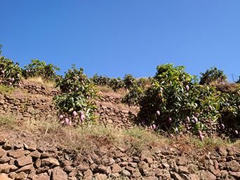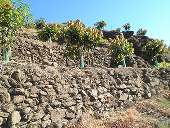 Después de décadas sin cultivar, el suelo fue sometido a un leve aterrazado, aprovechando la orografía del terreno y curvas de nivel para disminuir los efectos de erosión del manto superficial, dejando intercalados los centenarios olivos y almendros en la plantación, así como respetando las antiguas albarradas de piedra… quedando integradas éstas, como se aprecia en las fotos.